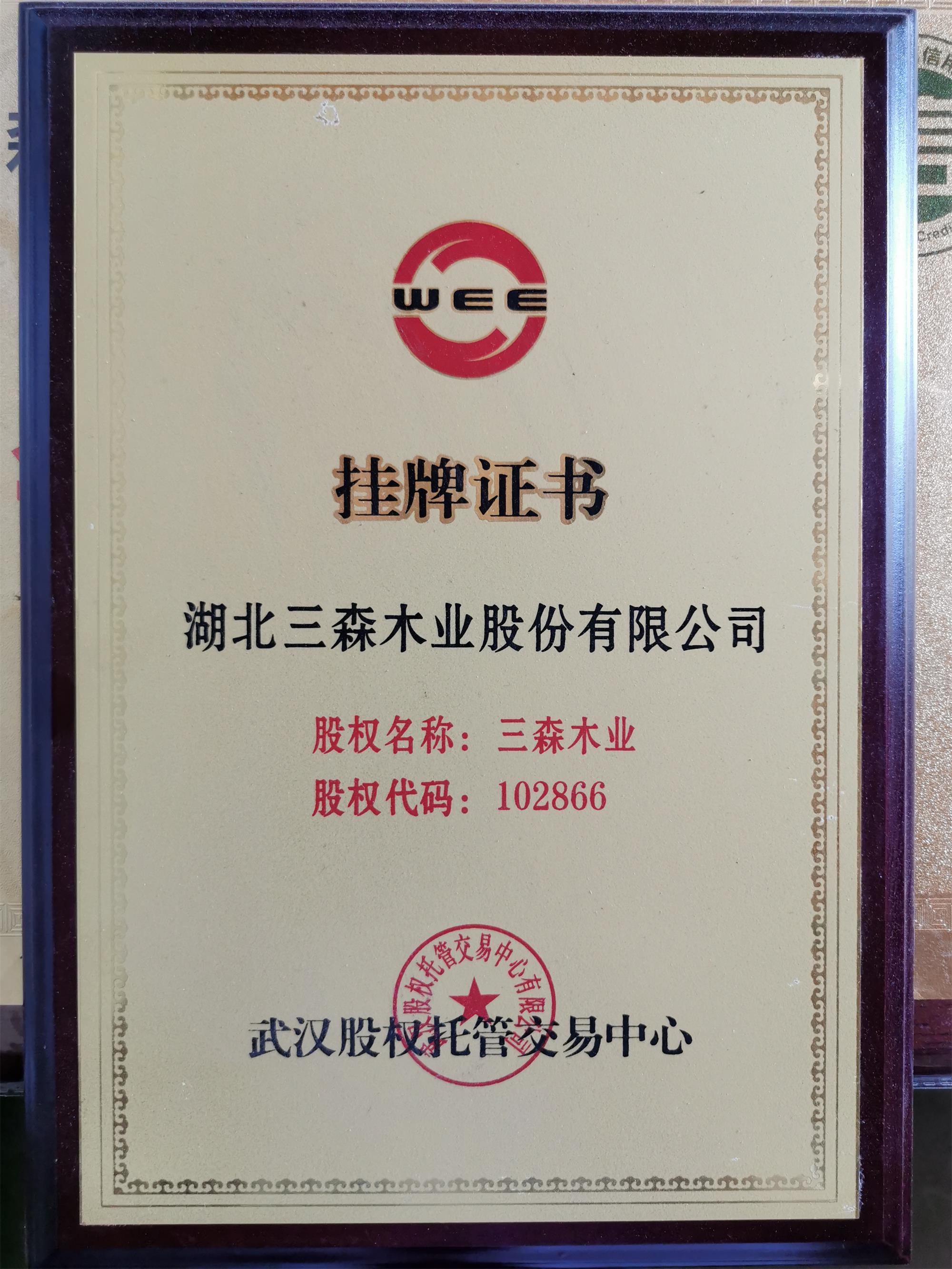 • 掛牌證書(shū)